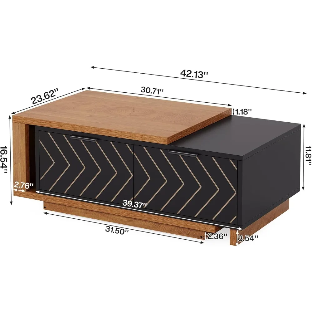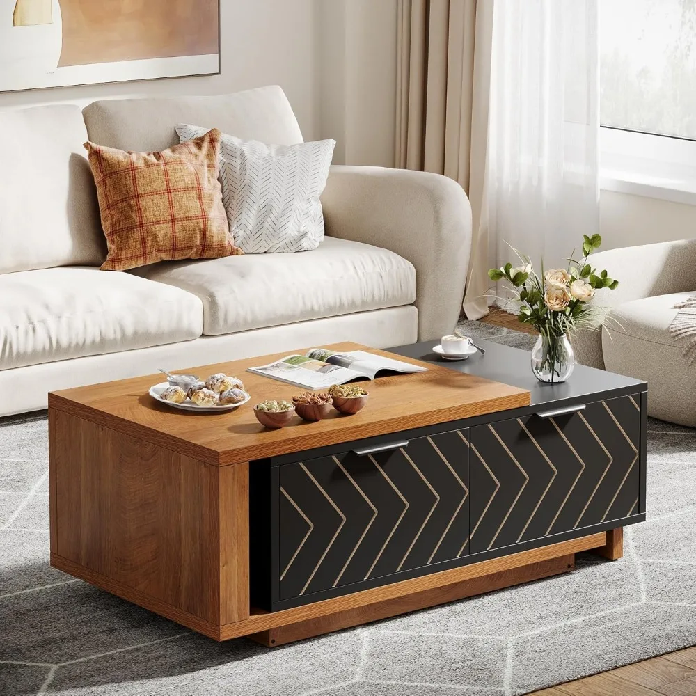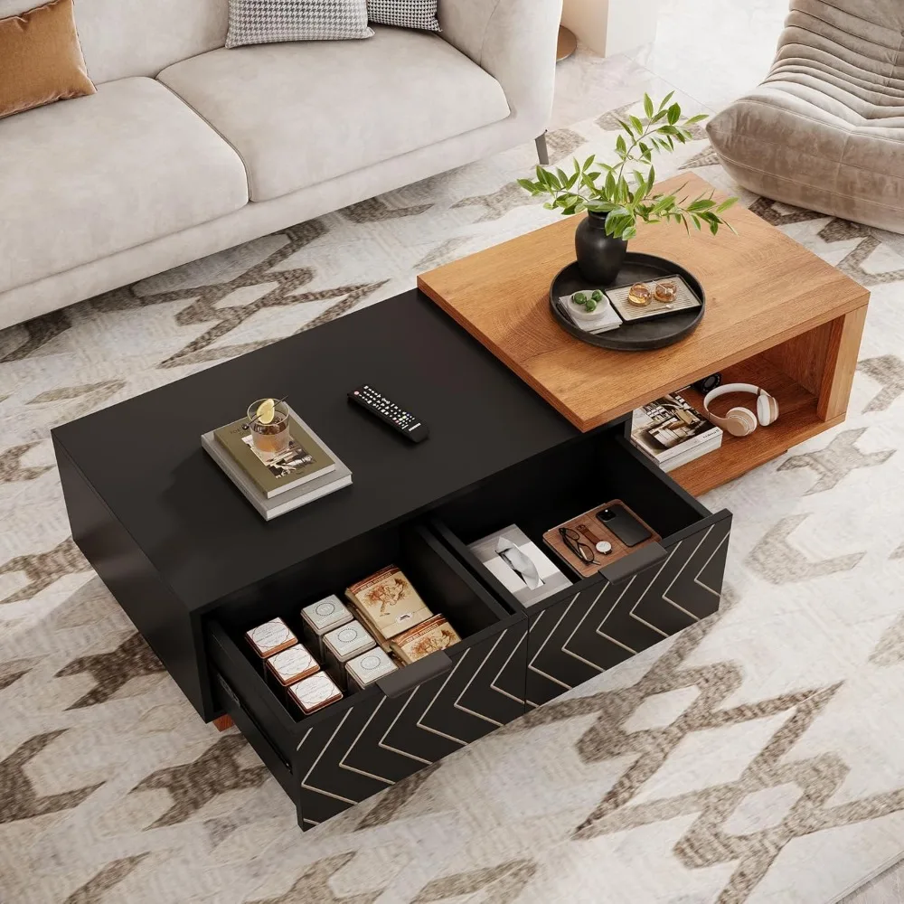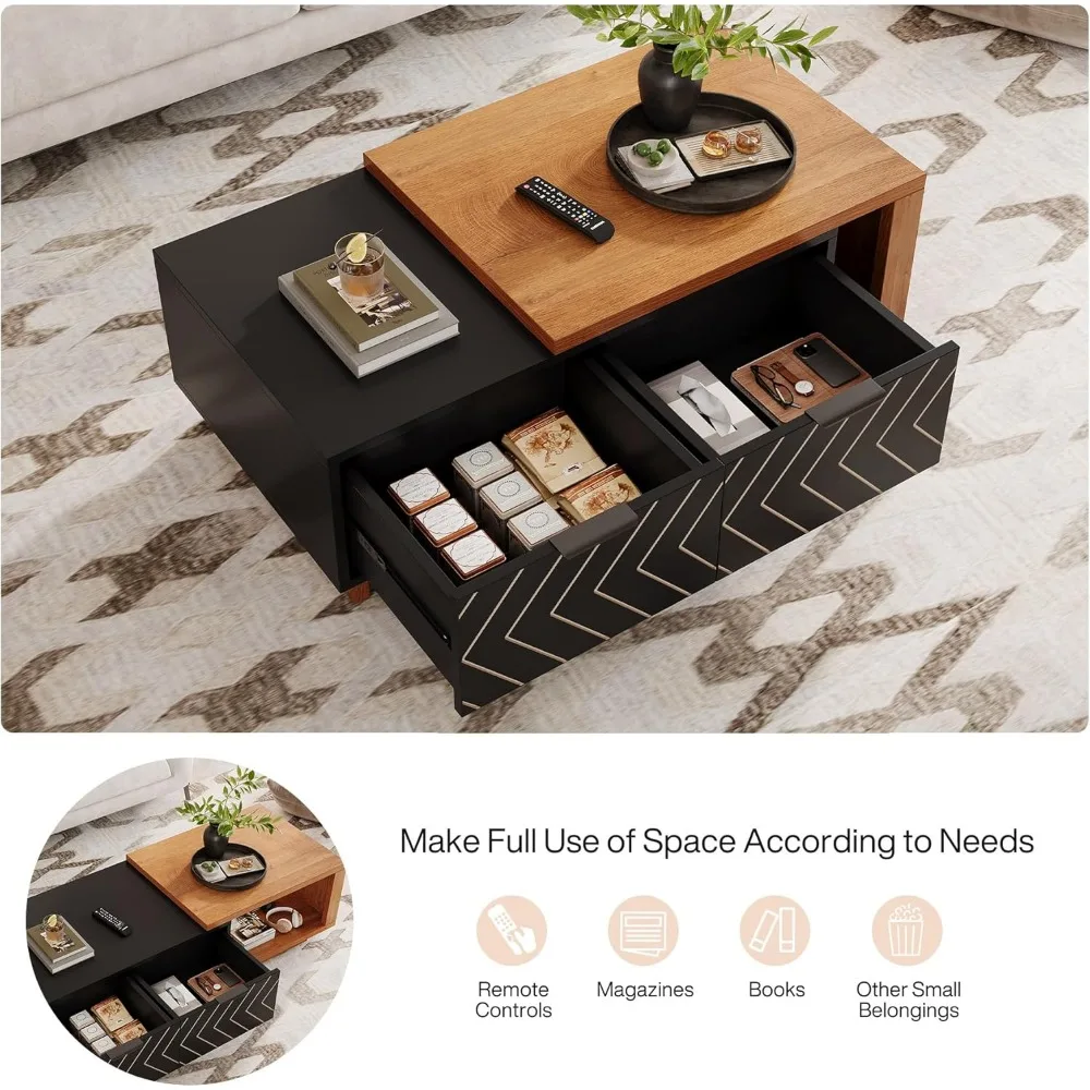 Coffee Table 2 Storage Drawers, Dual-Tone Wood Center Table Sliding Tabletop
